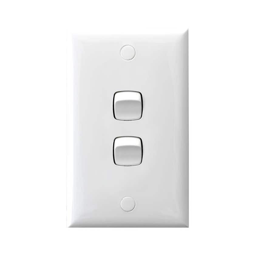 This 2 Gang Switch from HPM is a simple design. With no over-sized screws or unnecessary parts, this switch is built to last. Designed with mounting centres at 84mm, this switch can easily be installed in walls and ceilings.