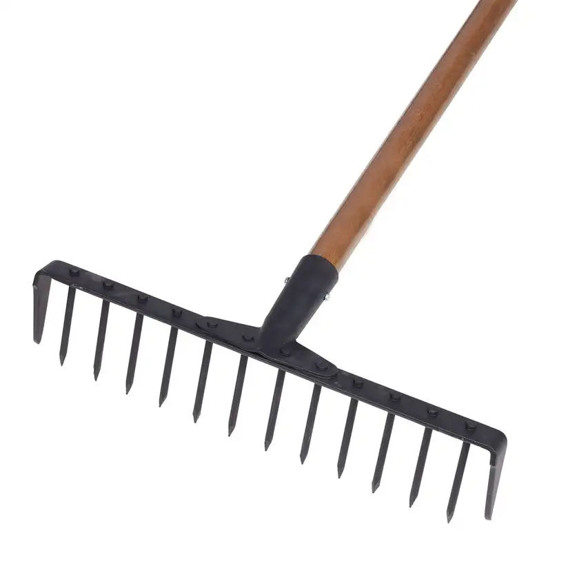 Effortlessly maintain your garden with the Gardenmaster 14 Tine Rake, designed for durability and efficiency. Its 100% tempered steel blade ensures strength and longevity, making it a reliable tool for heavy-duty garden work. The tapered teeth are crafted to provide better soil penetration and smoother raking, allowing you to clear leaves, debris, and soil with ease. A strong hardwood handle offers a comfortable grip and enhanced control, reducing strain during extended use. Whether you’re levelling soil, spreading mulch, or tidying up garden beds, this rake is built to handle the task. Designed to withstand tough conditions, it comes with a 10-year guarantee, ensuring long-lasting performance. Perfect for professional landscapers and home gardeners alike, this tool combines strength and practicality for everyday garden maintenance.