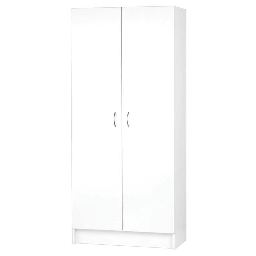 Create additional storage space in your kitchen or laundry with the Faulkner 2 Door 4 Shelf Cabinet. This cabinet has four fixed internal shelves which provide ample space for linen, cleaning products or pantry food. It also has two doors fitted with subtle silver handles which can open independently so you can just grab what you need. It has a solid 16mm white finish hard wearing melamine board which blends well with a variety of kitchen, laundry, or home decors with a neutral feel to it, and also has a 3mm MDF backboard which provides both stability and durability. It is simple to build with pre drilled pieces and also includes an anti-tip bracket for added safety.