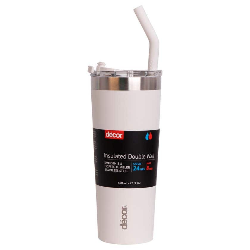 Decor Stainless Steel Insulated Tumbler with Straw XL 650ml
