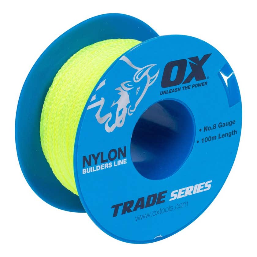 The Ox String Line in Lime Builders #8, with a generous length of 100m, is a reliable companion for construction professionals and DIY enthusiasts alike. Crafted from tough synthetic material, this string line boasts high tensile strength, ensuring durability and longevity even in demanding work environments. Its versatility shines through as it proves to be ideal for various tasks, including precise layout work and the meticulous process of brick and block laying.